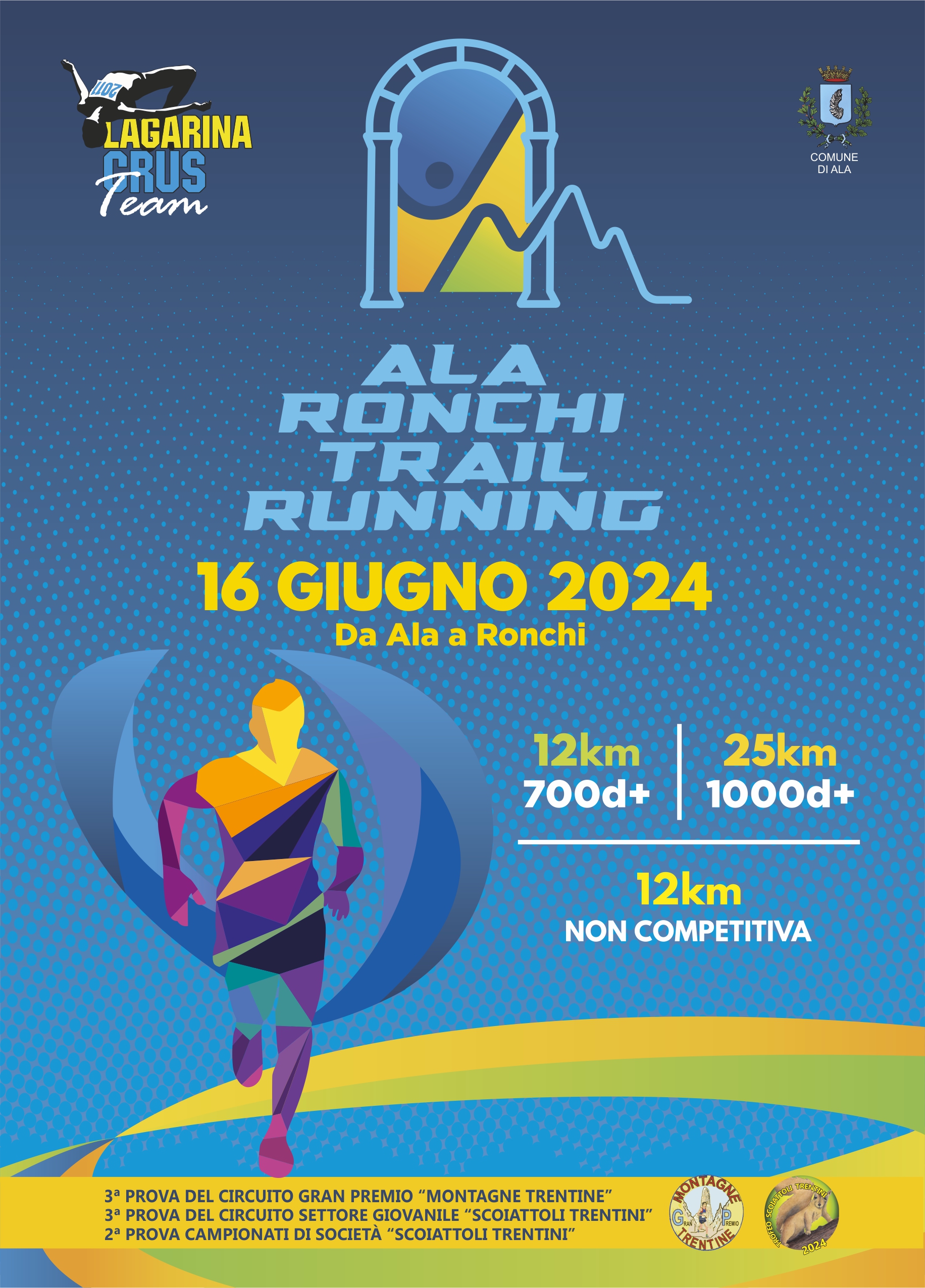 La gara fa parte del Gran Premio Montagne Trentine, di cui costituisce la terza prova. Si snoda sul percorso che risale la valle del torrente Ala, dal centro della città fino alla ridente frazione di Ronchi. Il terreno si adatta a varie esigenze, è per questo che l'evento prevede tre tipi diversi di percorso. Accanto all'Ala Ronchi Trail Running vero e proprio (percorso di 12 chilometri e 700 metri di dislivello positivo), ci sono altre due tracciati. Uno è per i più ambiziosi ed è una gara di 25 chilometri e 1000 metri di dislivello. Per tutti gli altri c'è invece la 12 chilometri non competitiva, che rende una giornata di sport anche l'occasione per vivere in compagnia una giornata all'aria aperta. Da non dimenticare poi la prova per gli atleti in erba, gli “Scoiattoli trentini”, che si terrà direttamente nei dintorni di Ronchi.